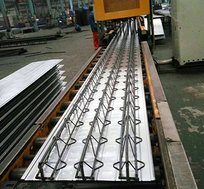 3、鋼筋桁架樓承板實(shí)現(xiàn)了機(jī)械標(biāo)準(zhǔn)化生產(chǎn),有利于鋼筋排列位置準(zhǔn)確,間距均勻,提高了樓板的施工質(zhì)量。并且減少現(xiàn)場(chǎng)鋼筋綁扎工作量,很大程度的縮短工期,節(jié)省成本。