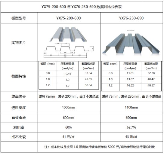 三、600型樓承板和690型樓承板的板型對比