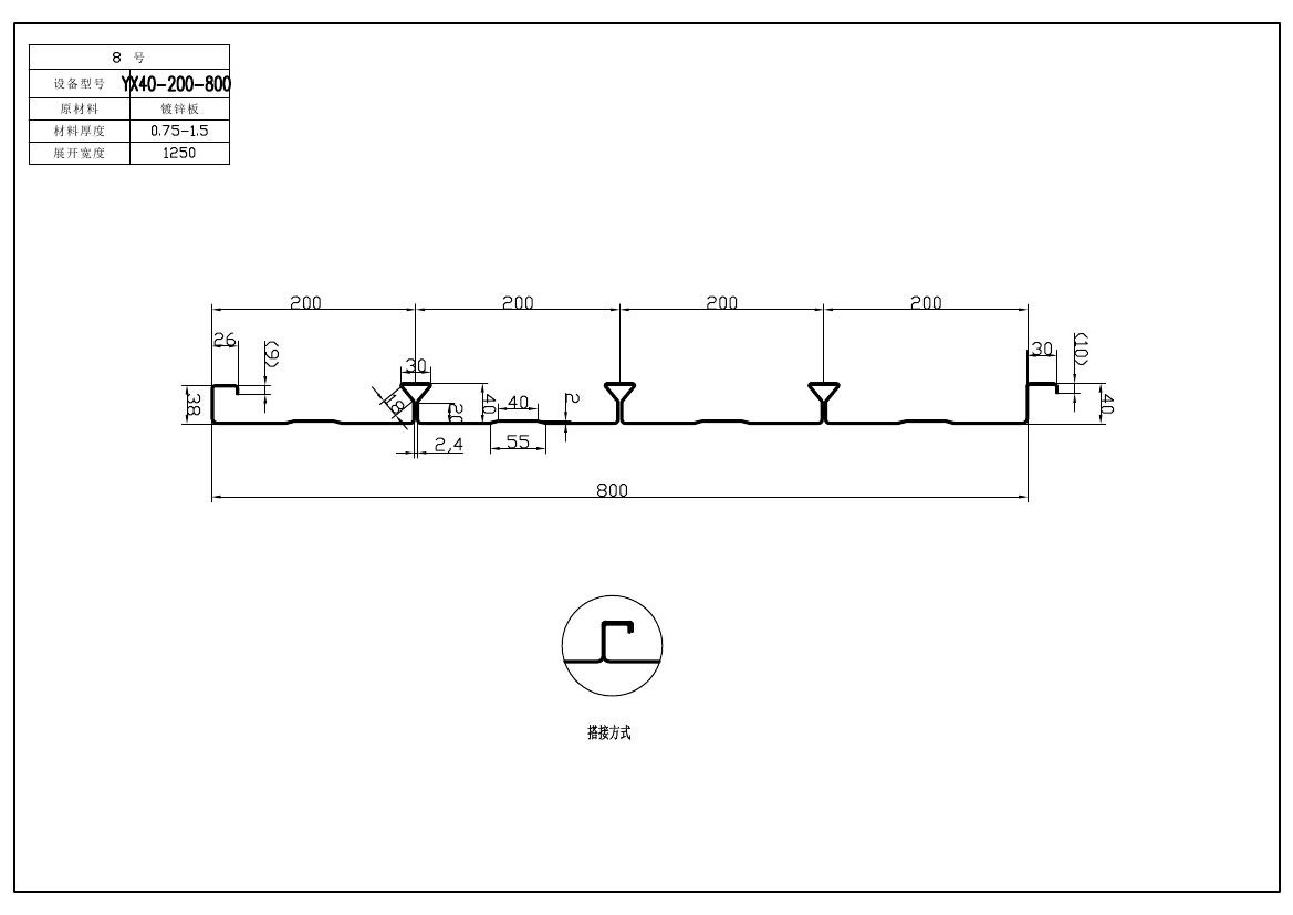 YX40-200-800閉口樓承板,也叫壓型鋼板、鋼承板、鋼樓承板,是采用鍍鋅鋼板經(jīng)輥壓冷彎成型,其截面成V型、U型、梯形或類似這幾種形狀的波形,主要用作性模板,也可被選為其他用途。